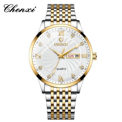CHENXI Luxury Gold & Silver Couple Watch Set – Two-Tone Stainless Steel Quartz Wristwatch – W8